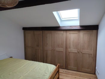 Placard encastré et sous pente en chêne massif et aménagements tripli.