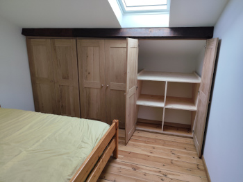 Placard encastré et sous pente en chêne massif et aménagements tripli.