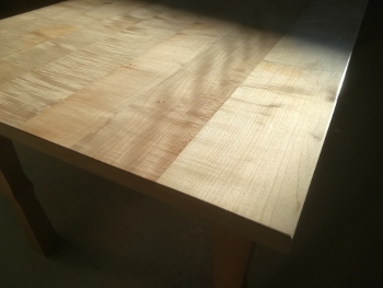 Table de salle à manger en erable 1750X800X750, plateau en erable ondé.